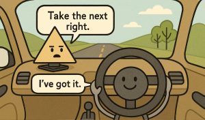 Edges, Curves, and the Road to Somewhere The triangle, sitting stiffly on the dashboard said,“Take the next right.” The circle, humming to a lo-fi playlist